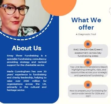 “Emsy Fundraising's fundraising health checklist offered an invaluable change to pause and reflect on our current approach. Marla's approach was thoughtful and considered, and the analysis of the wider fundraising was a useful perspective on some of the trends we have felt in practice. A very useful exercise creating a lot of space to carefully plan out next steps - would recommend!”